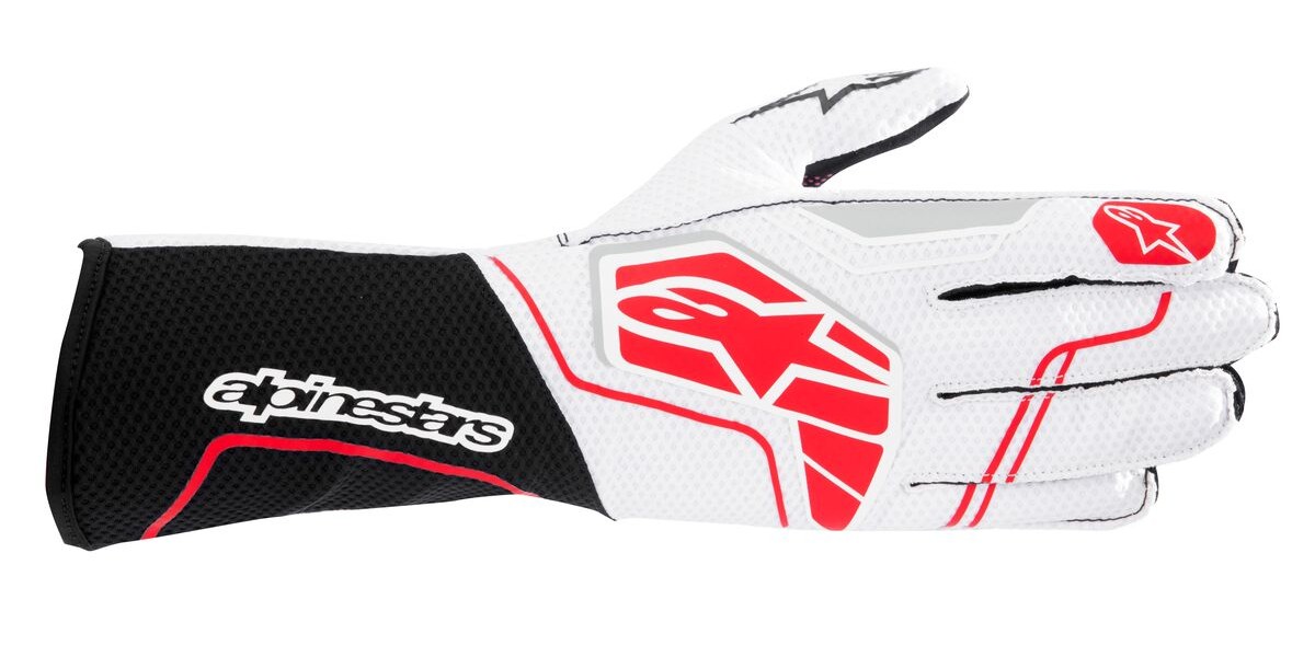 This lightweight sports glove model features a new construction of polyester bonded with polymesh to offer superb levels of durability, comfort, fit and feel, and has internal seams and synthetic suede leather on the palm to allow for excellent levels of comfort, feel and grip. There are also mesh fourchettes on one half of the fingers and lycra on the other half for the perfect blend of ventilation, flexibility and comfort, with a silicon surface treatment on the palm and fingers for improved flexibility and control. It is also equipped Alpinestars open cuff design with a 180° elasticated wrist for easy entry and a secure fit, and a touch compatible print on thumb and index fingers for using mobile devices while at the track.